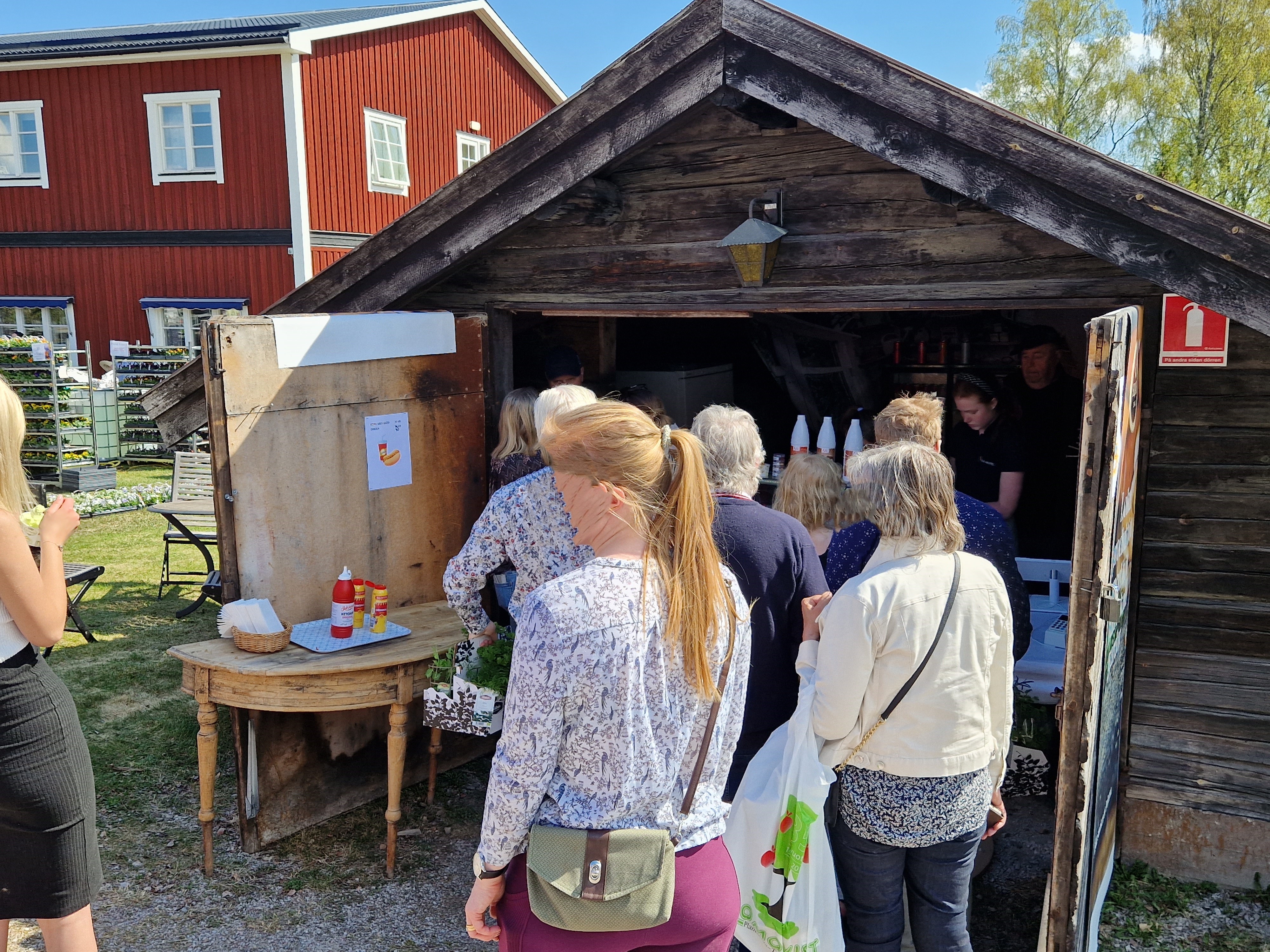Garageglass och varmkorv med bröd serveras.