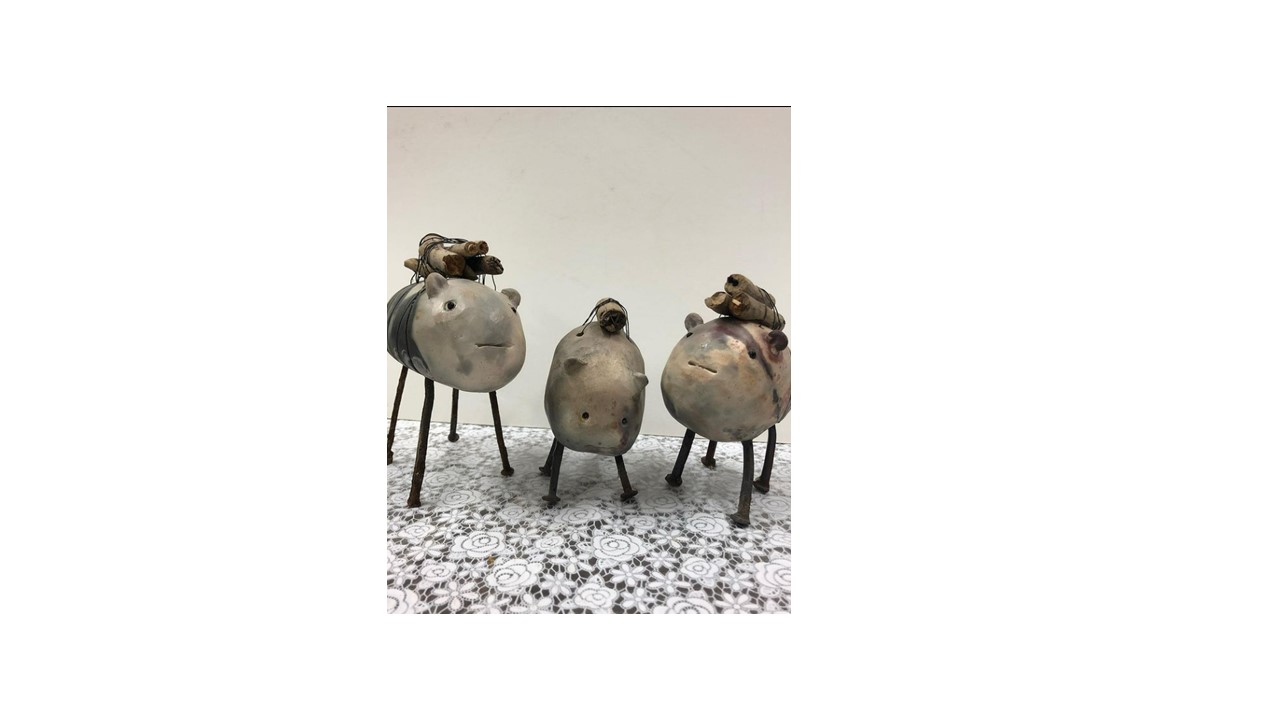 Dekorerad keramik, t ex fågelholkar, mjölksyrningskrukor och trädgårdskonst.